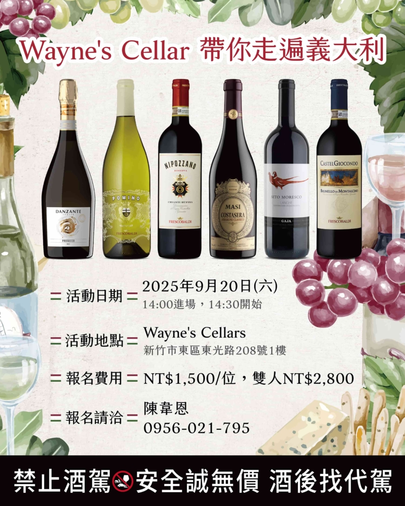 📍 活動地點:Wayne’s Cellars(新竹市東區東光路208號1樓)